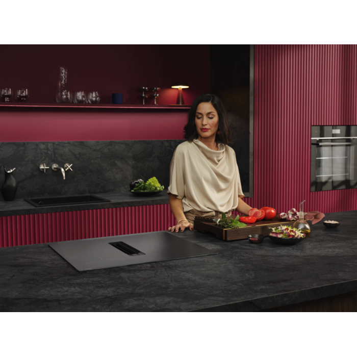 Ваша кухня — по‑вашему. Сочетание быстрой и мощной индукционной панели с интегрированной вытяжкой позволяет планировать кухню с меньшими ограничениями по размещению варочной поверхности.
