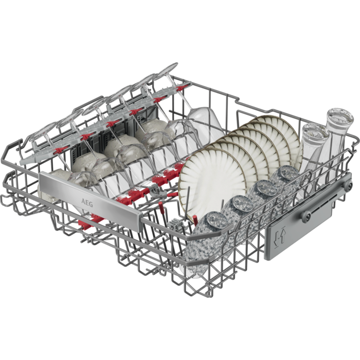 4 в 1 FlexHolder в нижней корзине оснащён противоскользящими резиновыми фиксаторами, которые надёжно удерживают винные, шампанские и высокие бокалы для тщательной мойки и предотвращают их столкновение. Он также удерживает противни под правильным углом для удаления пригоревших остатков пищи.