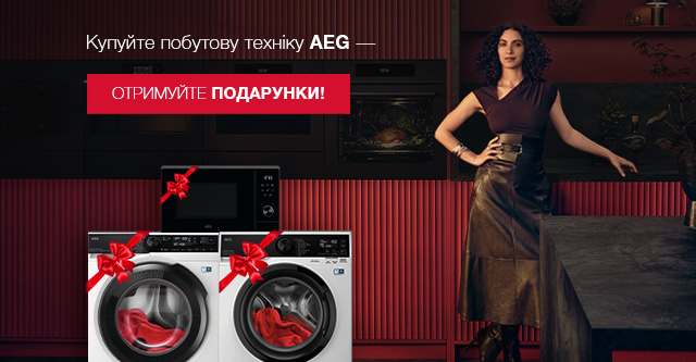 При заказе от 450 000 грн — подарок: стиральная машина AEG LFR73944QU и сушильная машина AEG TR838P4U